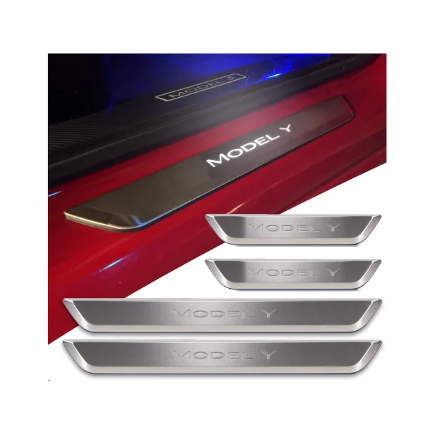 Pep din Model 3 eller Y op med lys i dørlisten.