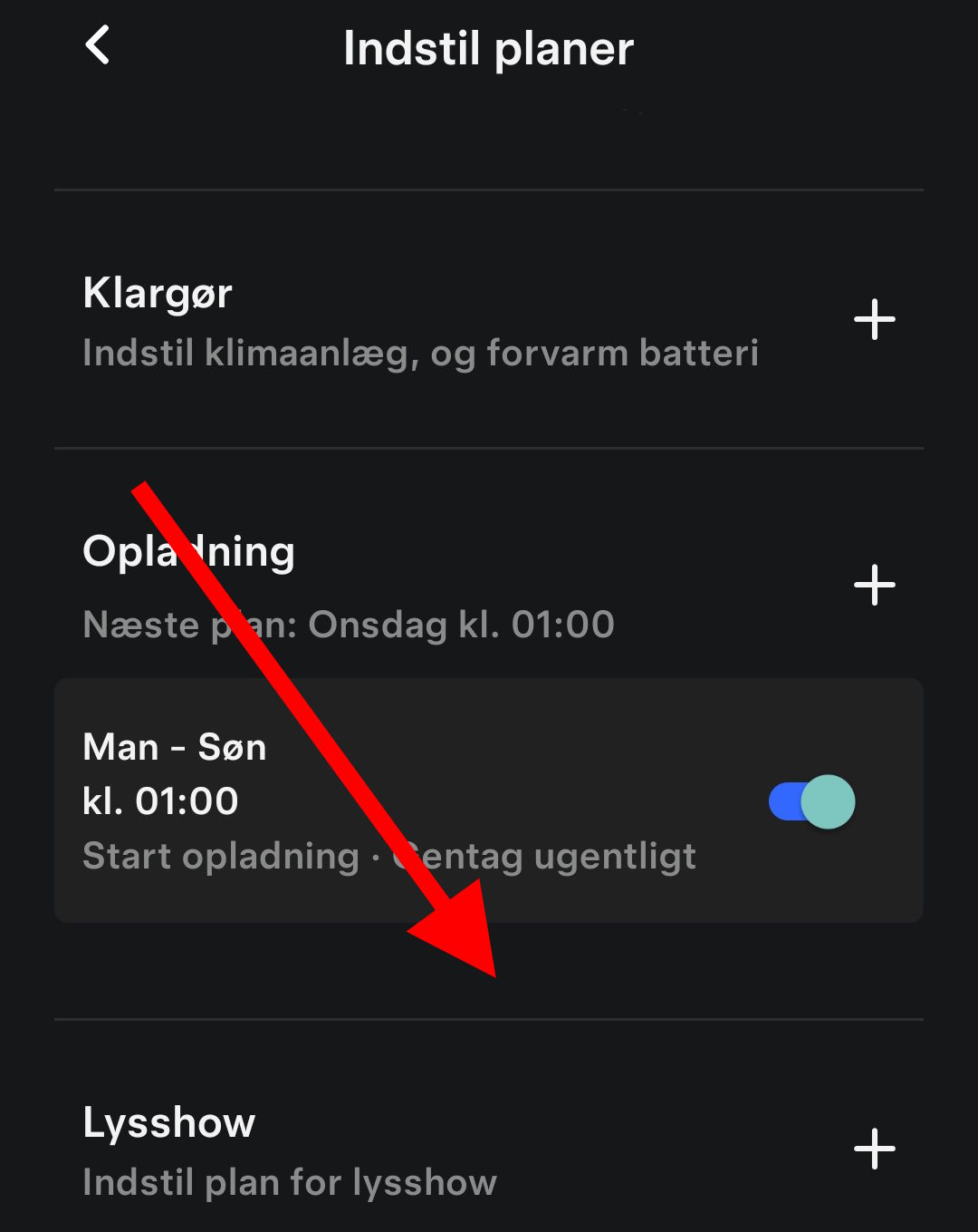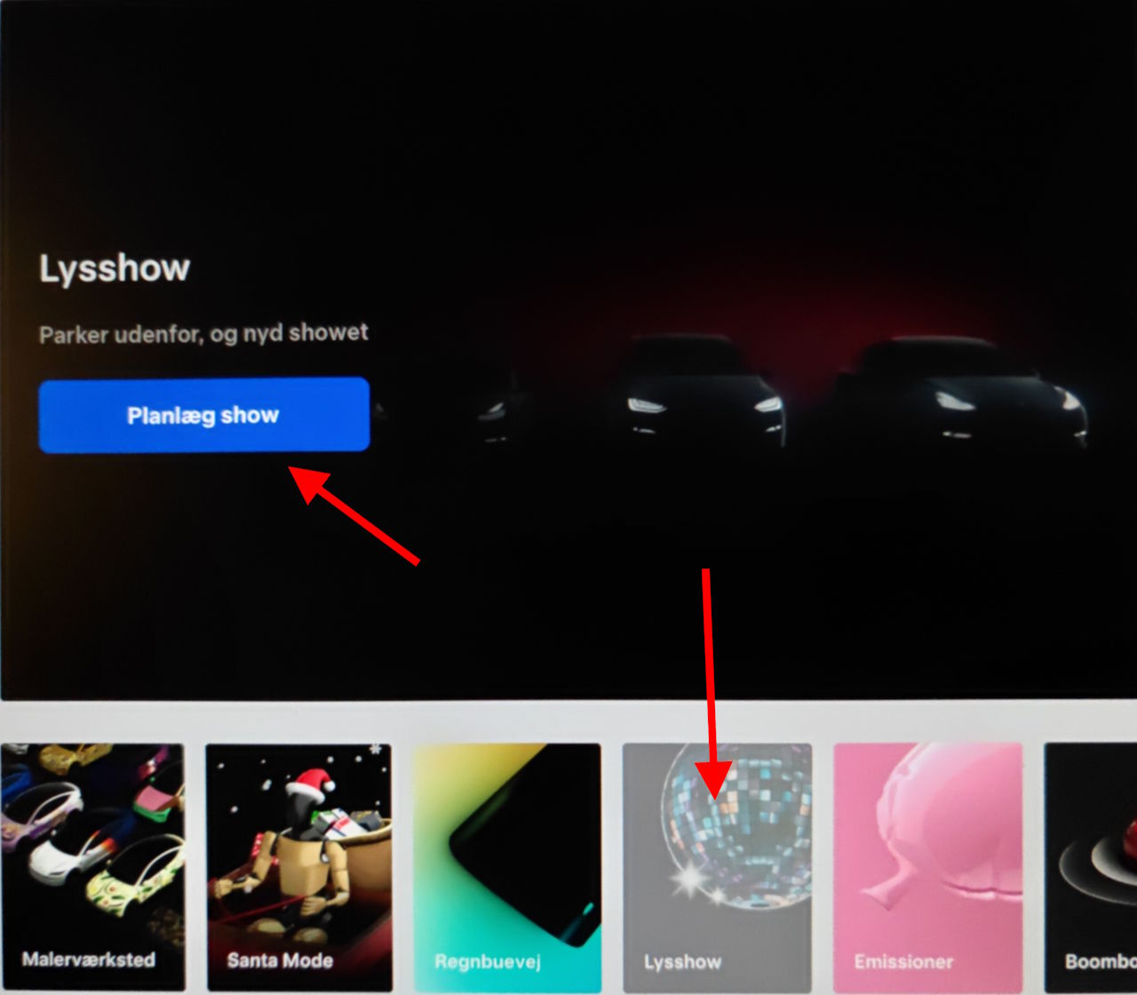 Sæt bilen i Park (P), ellers kan du ikke starte lysshowet.