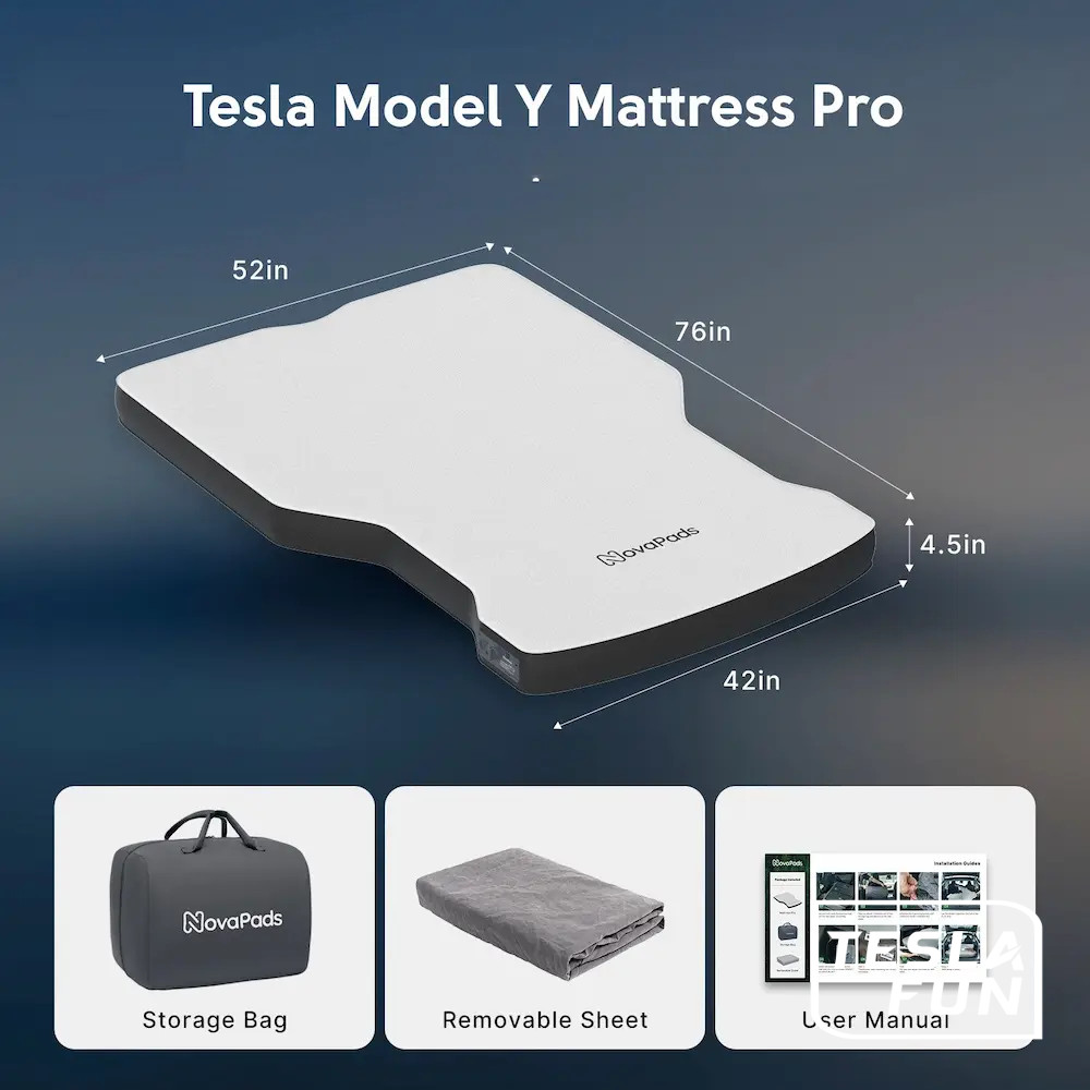 NovaPads har en virkelig fed oppustelig skræddersyet luftskummadras til Model Y, der samtidig ikke fylder ret meget, når den ikke er i brug.