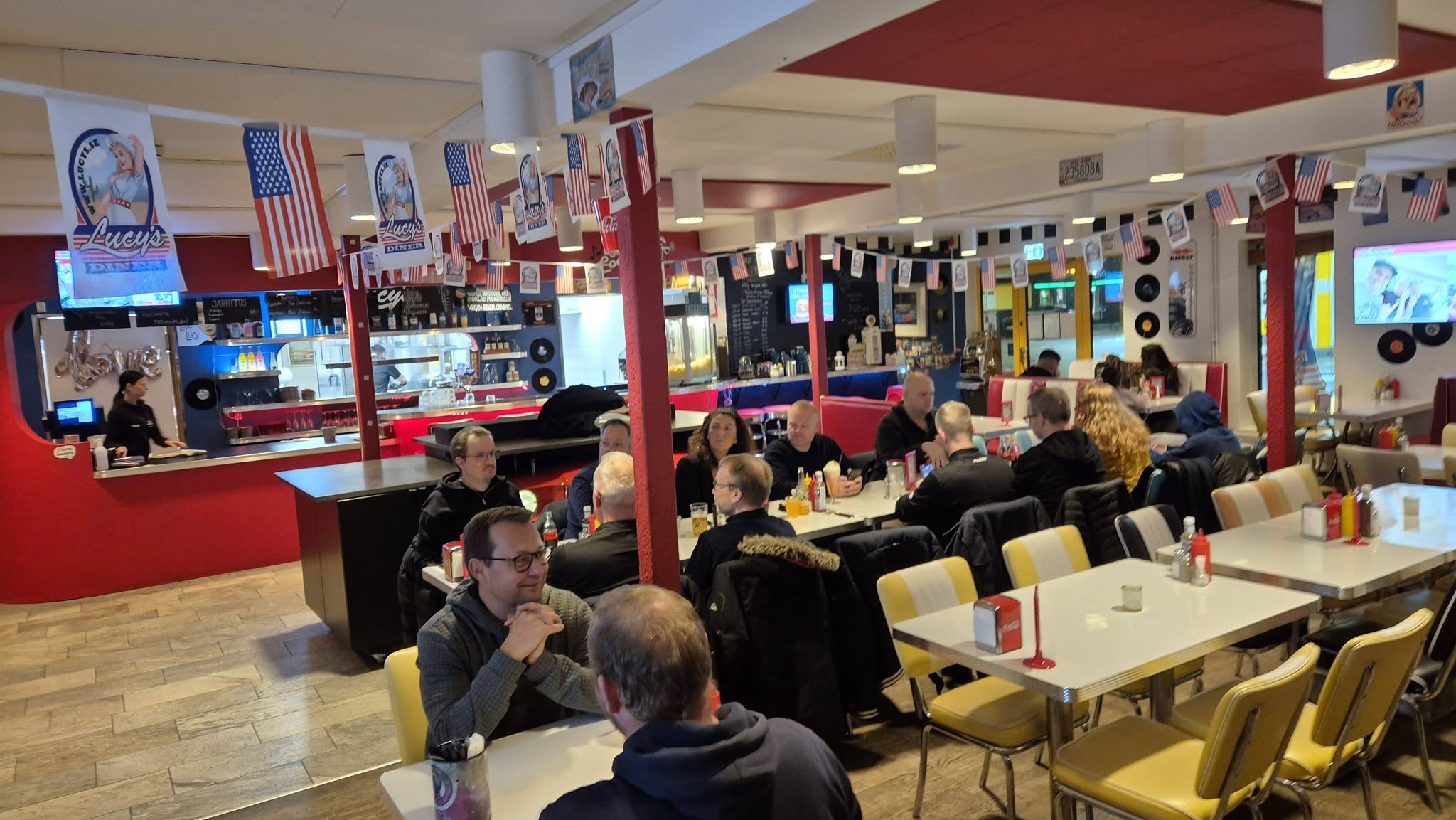Lucy's i Löddeköpinge, der er kraftigt inspireret af 50ernes burger steder i USA, og et superflot et af slagsen, har været fast mødested for de svenske Tesla ejere gennem årene, i nogle perioder en gang om ugen, for nogle år siden hver 14. dag, men nu slutter det, da Lucy's er blevet opkøbt af hotellet, så vi var forbi til et sidste møde og et hyggeligt et af slagsen.