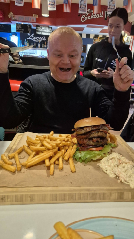 På Lucy's findes en Challenge burger på 600 gr., som man skal spise på et kvarter, så kvitterer Lucy´s med en T-shirt.