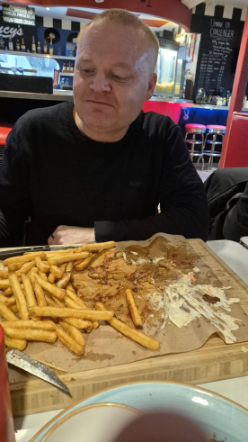 Henrik overvejede denne udfordring, men kunne ikke bestemme sig og lod skæbnen afgøre det med en Sten, Papir, saks duel mod mig - efter en sikker 2-0 sejr måtte han i gang med sin Challenge. Han havde dog ikke set at der også var fritter og måtte give op på dem, da de 15 minutter man har til at spise det hele var gået.