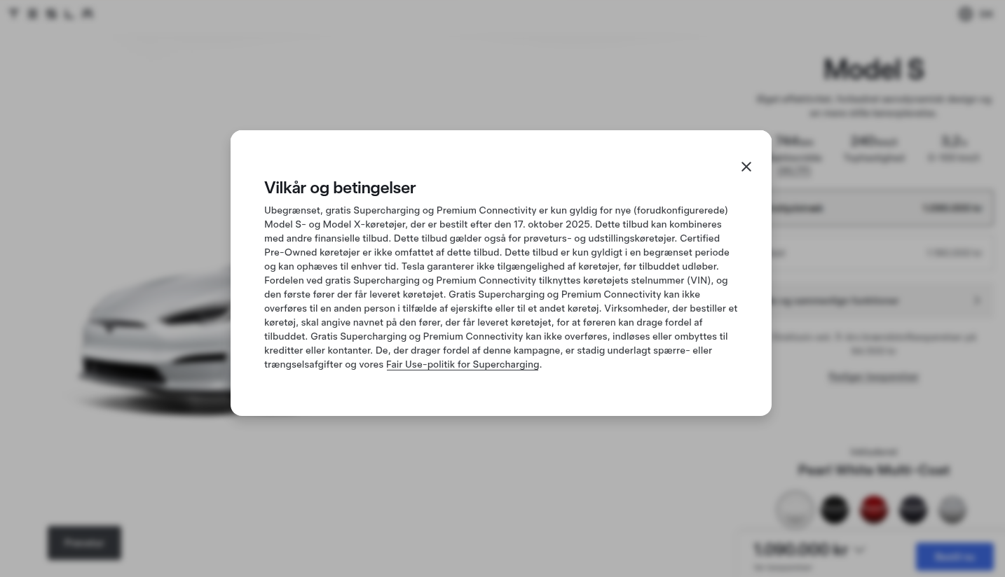 Har du bestilt en Model S eller X fra 17. oktober 2025 eller derefter vil du modtage ubegrænset, gratis Supercharging og Premium Connectivity.